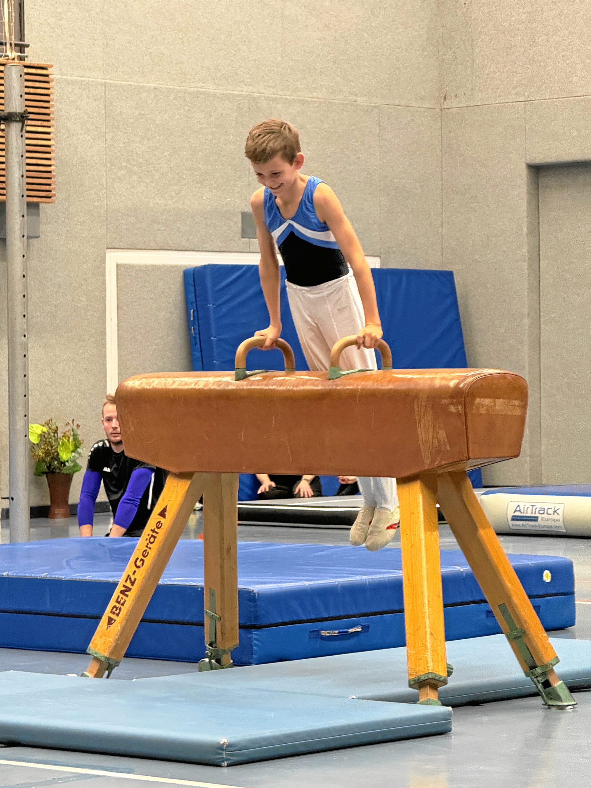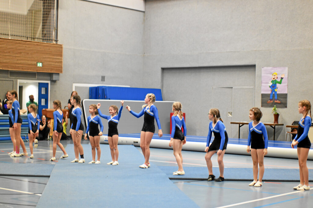 Sportlich anspruchsvoll wurde es auch bei den größeren Jungs, die ihre Wettkampfübungen gekonnt demonstrierten. Ebenfalls mit großem Applaus bedacht wurden die Wettkampf-Mädchen, die mit „Tanz trifft Turnen“ eine kurze Tanzeinlage mit eleganten Bodenübungen präsentierten.