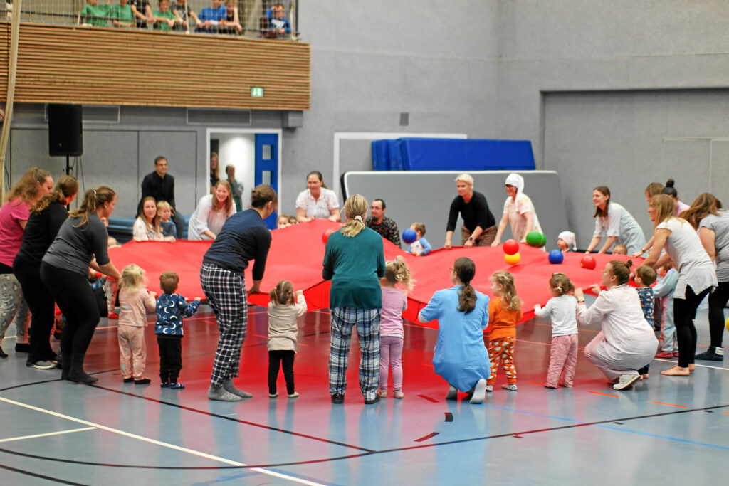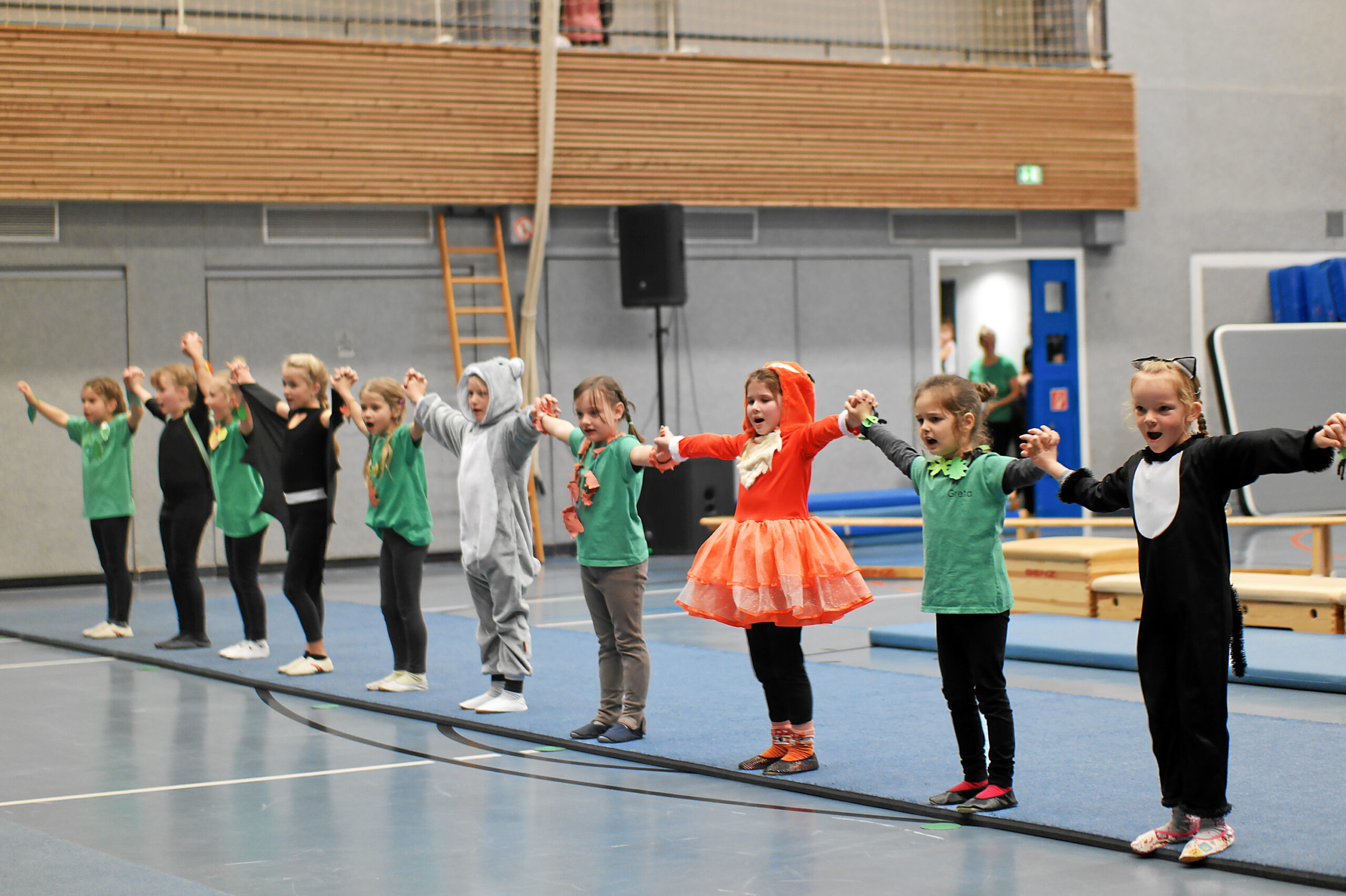 Den Auftakt machten die Rennmäuse, welche mit ihrem fröhlichen Zirkus-Auftritt für strahlende Gesichter sorgte. Ihnen folgten die Allerkleinsten der Eltern-Kind-Gruppe, die das Publikum als Schlafmützen mit auf eine Reise ins Traumland nahmen.