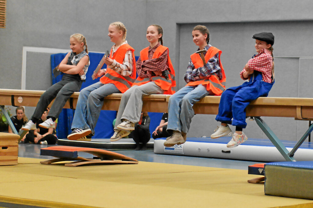 Die Mädchen der 1. und 2. Klasse entführten das Publikum in „Die Schule der magischen Tiere“, bevor die Buben der gleichen Altersklassen als flinke Turn-Ninjas sich durch einen anspruchsvollen Parcours schlängelten. Als Handwerker, auf dem Schwebebalken zeigte die Mädchenturngruppe ihr Können.