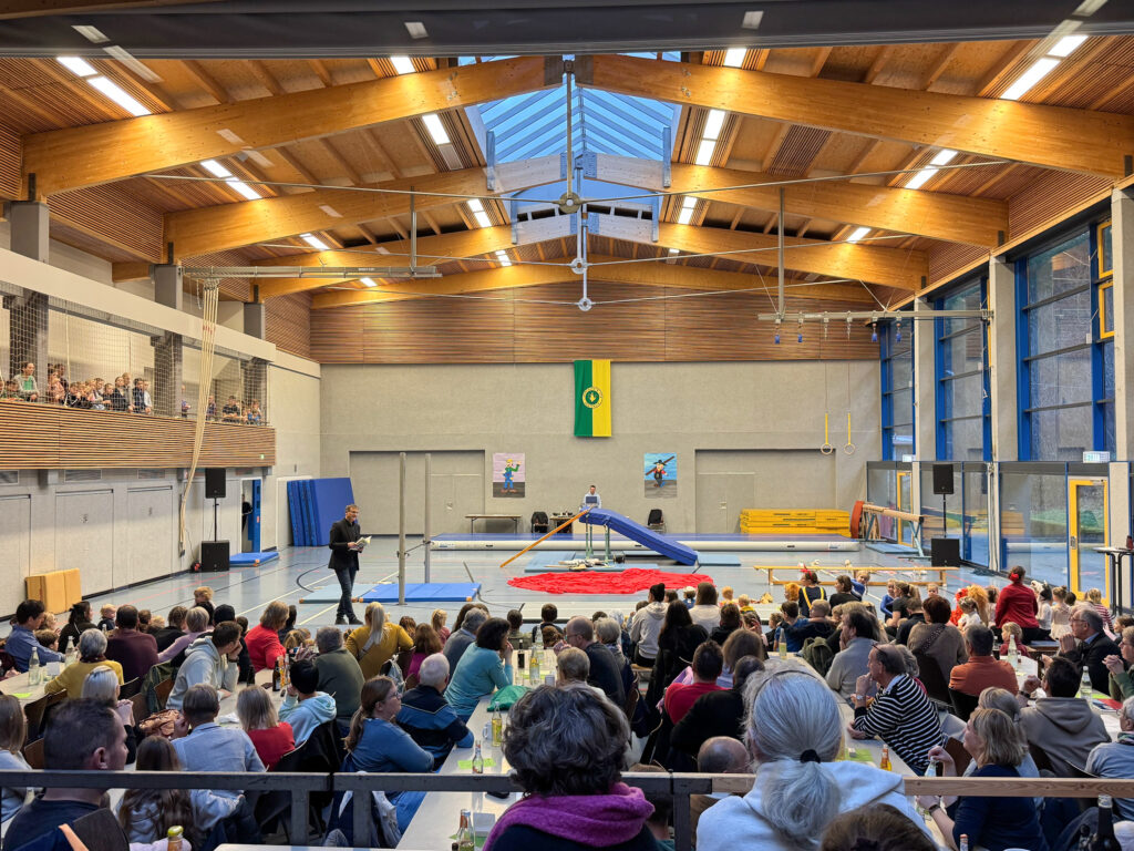 Ein herzliches Dankeschön gilt allen, die zum Gelingen der Turnschau beigetragen haben. Eine solche Veranstaltung ist nur möglich, wenn viele Hände zusammenhelfen. Der Dank richtet sich an die vielen Kuchenbäckerinnen und Kuchenbäcker, die mit ihren Leckereien für eine bestens ausgestattete Kuchentheke sorgten, ebenso wie an die Helferinnen und Helfer beim Auf- und Abbau, die im Hintergrund dafür sorgten, dass Bühne, Geräte und Halle rechtzeitig bereitstanden und später wieder zügig verräumt wurden.