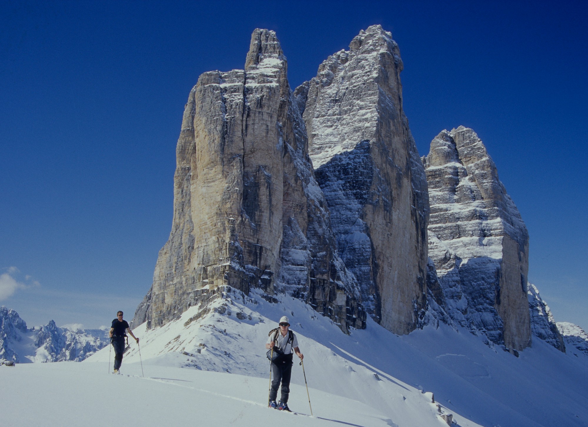 Per Gleitschirm flog er die gigantische Nordwand des Langkofels hinauf und in den senkrechten Wänden der Dolomiten lockten ihn mehrtätige verwegene Klettersteig-Abenteuer sowie Genuß-Kletterrouten an den Vajolettürmen oder den Drei Zinnen. Und mit Schneeschuhen erkundete er die unberührte Winternatur.